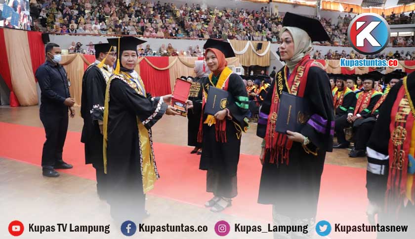 Kupastuntas.co, Bandar Lampung - 1.103 lulusan Universitas Lampung (Unila) mengikuti prosesi Wisuda Periode IV Tahun Akademik 2022/2023 di GSG Unila, pada Sabtu (18/3/2023).