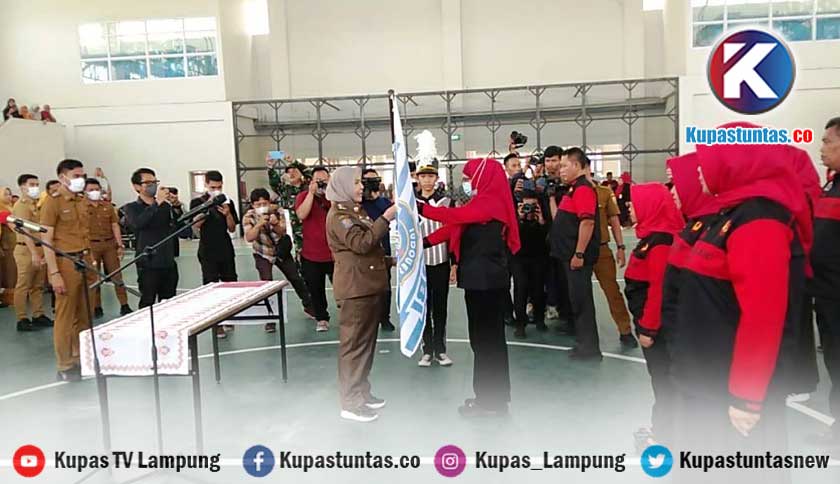 Kupastuntas.co, Bandar Lampung - Pengurus Persatuan Drum Band Indonesia (PDBI) Kota Bandar Lampung secara resmi dilantik oleh Eva Dwiana selaku Dewan Penasehat PDBI Kota Bandar Lampung, Gedung sport center UIN RIL, Senin (20/3/2023).