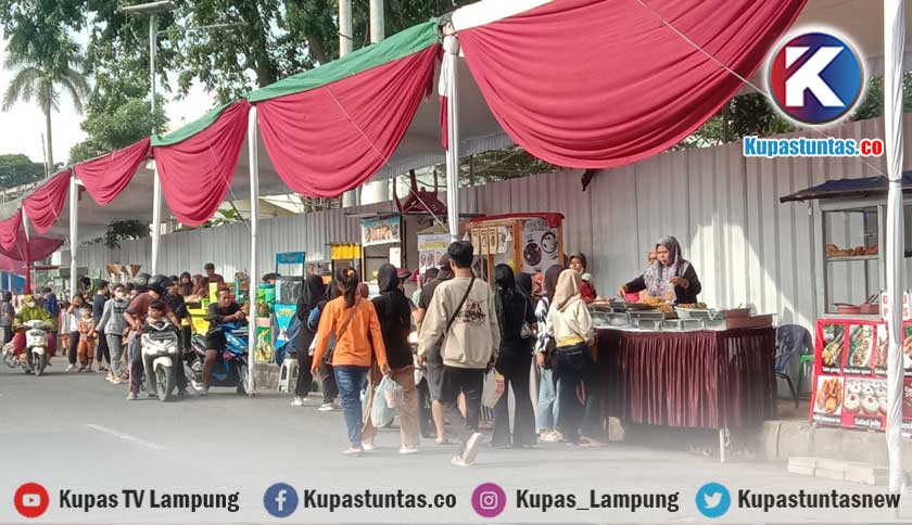 Suasana stand berjualan takjil di Jalan Sriwijaya, Enggal, Bandar Lampung atau Taman Gajah, yang diserbu pengunjung di hari pertama puasa. Foto: Martogi/Kupastuntas.co