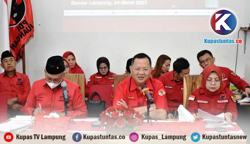 Kupastutas.co, Bandar Lampung - PDI Perjuangan Provinsi Lampung menggelar Rapat Koordinasi (Rakor) guna mengoptimalisasi Media Pintar Perjuangan, di Kantor DPD PDI Perjuangan Lampung, Jumat (24/3/2023).