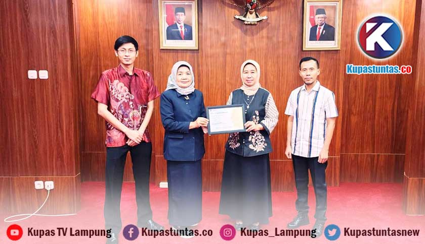 Penghargaan diberikan oleh Account Representative KPP Bandar Lampung II Eka kepada Rektor Unila Prof. Dr. Ir. Lusmeilia Afriani, D.E.A., IPM., di dampingi Ida Ropaida, S.E., MM., Kepala Biro Umum dan Keuangan, dan Hendi Wibowo, S.E. selaku Koordinator Bagian Keuangan Unila.