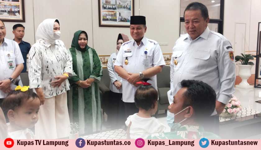 Gubernur Lampung Arinal Djunaidi saat melepas kepulangan Afifah dan Aliyah di RSUD Abdul Moeloek, Kamis (13/4/2023). Foto: Ria/Kupastuntas.co