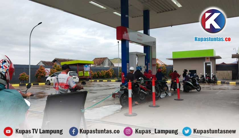 Kendaraan yang tengah antri melakukan pengisian BBM di SPBU Sukabumi Bandar Lampung. Foto: Dok/kupastuntas.co