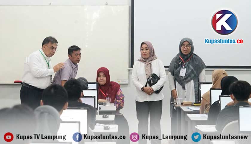 Kupastuntas.co, Bandar Lampung - Wakil Rektor Bidang Akademik Universitas Lampung (Unila) Dr. Eng. Suripto Dwi Yuwono, S.Si., M.T., dan Wakil Rektor Bidang PKTIK Dr. Ayi Ahadiat, S.E., M.B.A., melakukan monitoring pelaksanaan Ujian Tulis Berbasis Komputer Seleksi Nasional Bersama Masuk Perguruan Tinggi Negeri (UTBK SNBT) 2023, Rabu (10/5/2023).