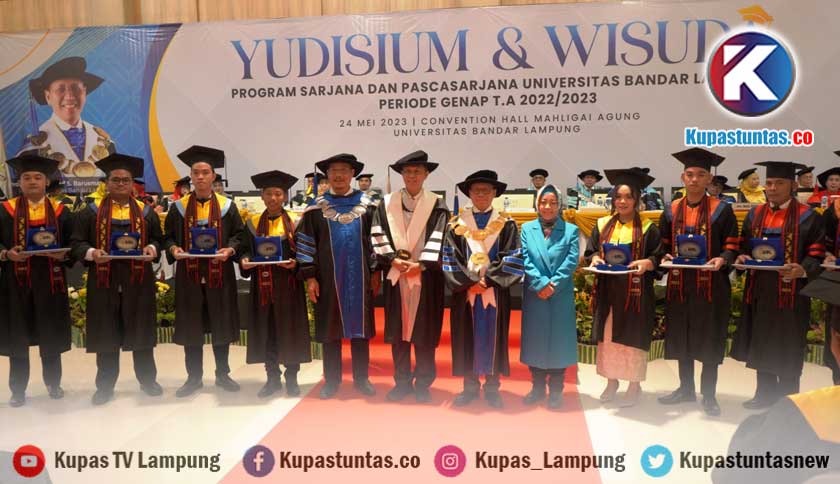 Kupastuntas.co, Bandar Lampung - Universitas Bandar Lampung (UBL) menggelar Yudisium dan Wisuda periode Genap Tahun Ajaran 2022/2023 di Convention Hall Mahligai Agung UBL, Rabu (24/5/2023).