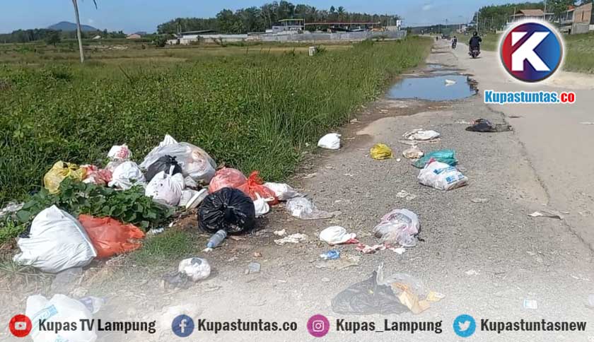 Kupastuntas.co, Bandar Lampung - Tumpukan sampah di beberapa titik Jalan Terusan Ryacudu, Kota Baru, Jati Agung, Kabupaten Lampung Selatan (Lamsel), kini kembali berserakan.