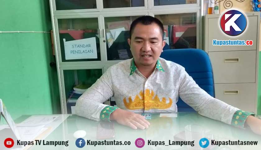 Humas SMP Negri 22 Bandar Lampung, Heriyadi saat diwawancarai diruangannya. Kamis, (8/6/2023). Foto: Yudha/kupastuntas.co