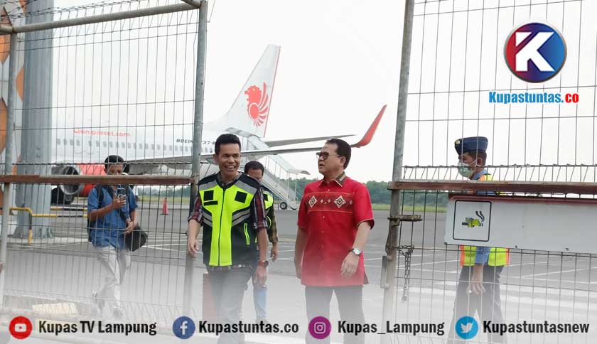 Prof Rokhmin tiba di Bandara Raden Intan Lampung di sambut Wakil Ketua DPD PDI Perjuangan Lampung Dr. Donald Harris Sihotang. Minggu (11/06/2023). Foto: Echa/kupastuntas.co