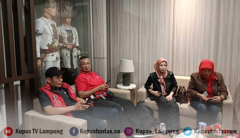 Rombongan DPD PDI Perjuangan Lampung, Sutono bersama rombongan saat tiba di Jakarta. Jumat, (23/6/2023). Foto: Echa/kupastuntas