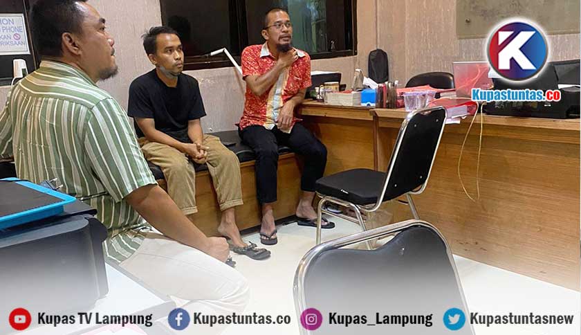 Aulia Rakhman (kaos hitam) saat diperiksa di Polda Lampung beberapa waktu yang lalu. Foto: Kupastuntas.co