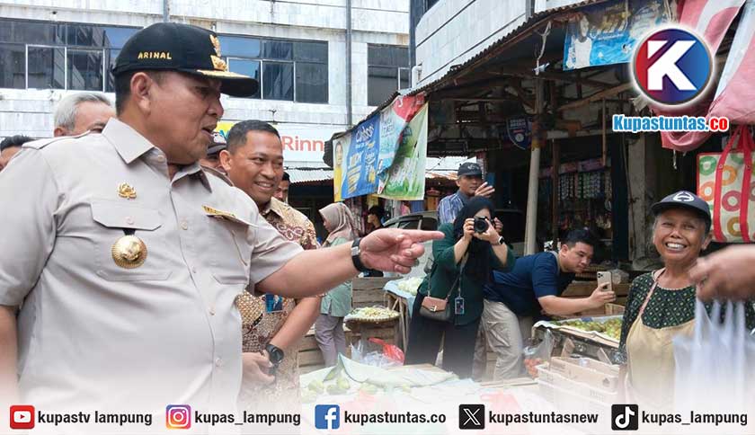 Gubernur Lampung Arinal Djunaidi saat meninjau pasar Panjang, Jumat (16/2/2024). Foto:Ria/kupastuntas.co
