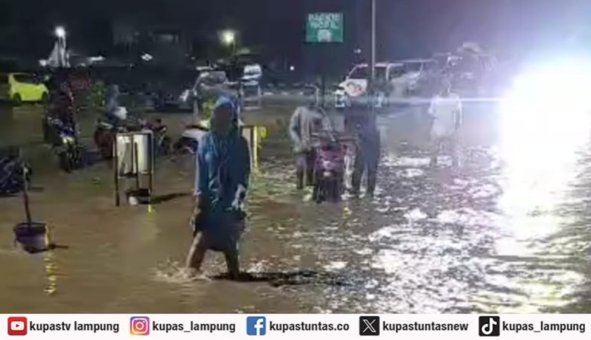 Banjir di parkiran RS. Urip Sumoharjo, akibat hujan deras yang terjadi sejak Sabtu (24/2/2024) sore. Foto: kupastuntas.co