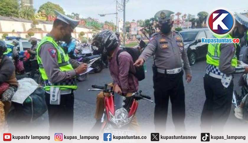 Pihak kepolisian saat melaksanakan Operasi Patuh Krakatau 2024 di Lampung. Foto: Martogi/kupastuntas.co