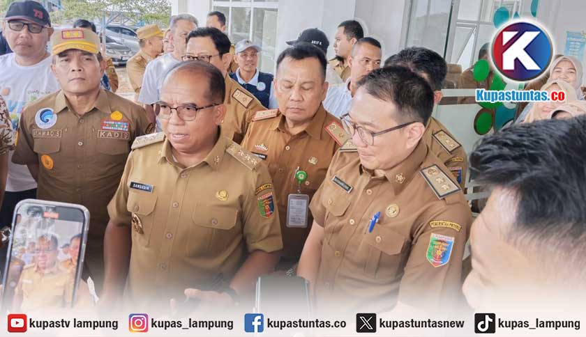 Pj Gubernur Lampung Samsudin saat dimintai keterangan usai meninjau RS BNH, Senin (29/7/2024). Foto: Ria/Kupastuntas.co