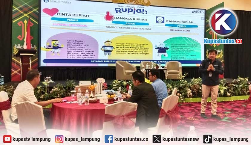 KPW Bank Indonesia Provinsi Lampung memberikan sosialisasi cinta bangga paham rupiah kepada para peserta yang mengikuti kelas jurnalistik Kupas Tuntas di Hotel Emersia, Kamis (1/8/2024). Foto: Ria/Kupastuntas.co