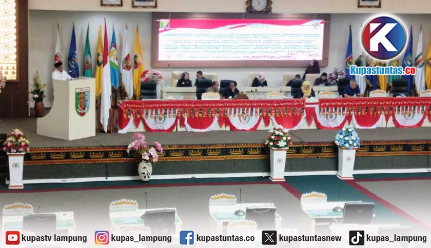 Rapat paripurna DPRD Provinsi Lampung mengenai pembahasan Raperda tentang RPJPD Provinsi Lampung Tahun 2025-2045, Selasa (6/8/2024). Foto: Ria/Kupastuntas.co