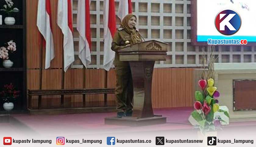 Walikota Bandar Lampung, Eva Dwiana, dalam peringatan Hari Koperasi Nasional ke-78 tingkat kota, yang digelar di Aula Semergou, Selasa (22/7/2025). Foto: Ist.