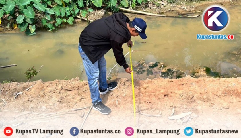 Petugas BPBD Mesuji saat mengecek sekaligus membersihkan sejumlah titik saluran air yang berpotensi tersumbat. Foto: Rio/kupastuntas.co