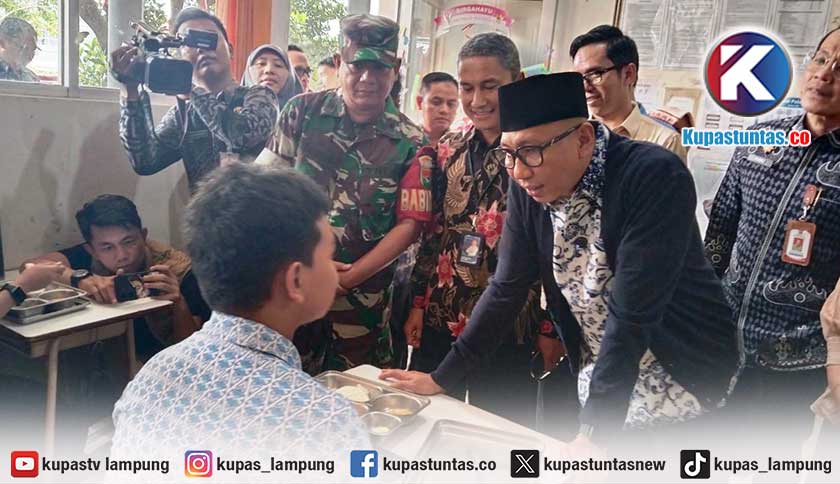 Kupastuntas.co, Bandar Lampung - Gubernur Lampung Rahmat Mirzani Djausal meninjau langsung pelaksanaan program Makan Bergizi Gratis (MBG) di SMP Negeri 2 Bandar Lampung, Kamis (2/10/2025).