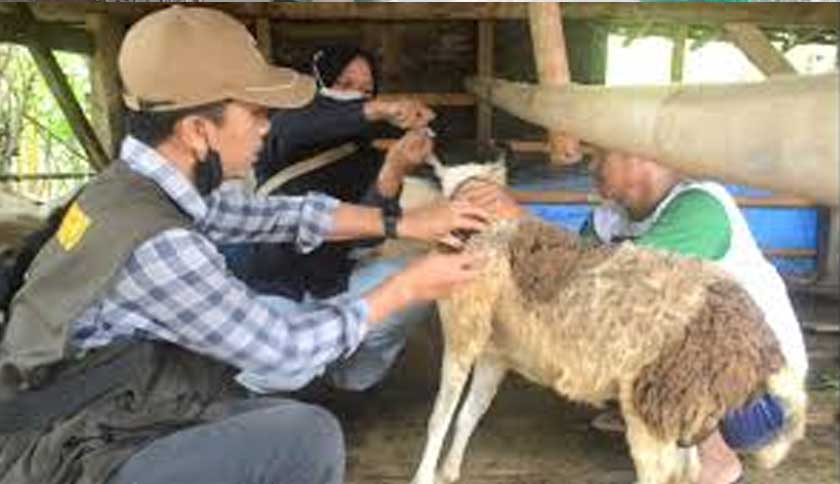 Petugas Puskeswan Gadingrejo saat memberikan pengobatan massal kepada kambing-kambing. Foto: Ist