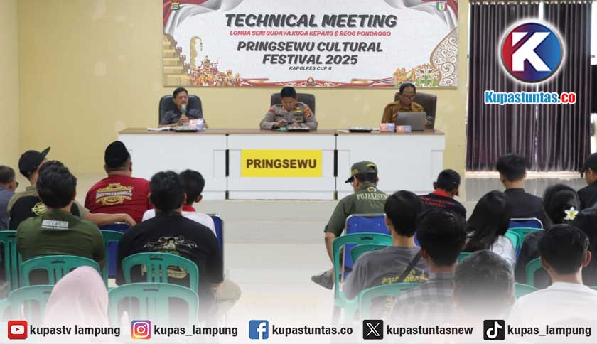 Sebagai langkah persiapan, jajaran Polres dan Pemkab Pringsewu menggelar technical meeting lomba kuda kepang dan reog Ponorogo di aula Mapolres Pringsewu, Selasa (7/10/2025). Kegiatan ini dibuka langsung oleh Wakapolres Pringsewu Kompol Robi Bowo Wicaksono, didampingi Kabid Kebudayaan Dinas Pendidikan dan Kebudayaan Kabupaten Pringsewu Sigit Budiarto, serta ketua tim juri lomba.