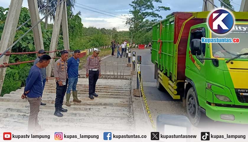Kasatlantas Polres Way Kanan, AKP Sulkhan, mendampingi Kapolsek Blambangan Umpu, AKP Yudhianto, meninjau langsung kondisi jembatan bersama petugas Dinas Perhubungan dan Dinas PUPR Kabupaten Way Kanan.