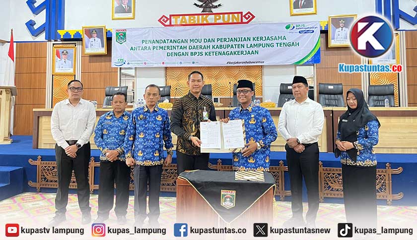 Kepastian itu ditandai dengan penandatanganan perjanjian kerja sama antara Pemerintah Kabupaten (Pemkab) Lampung Tengah dan BPJS Ketenagakerjaan Cabang Lampung Tengah yang berlangsung di Aula Siger Mas, Rabu (8/10/2025).