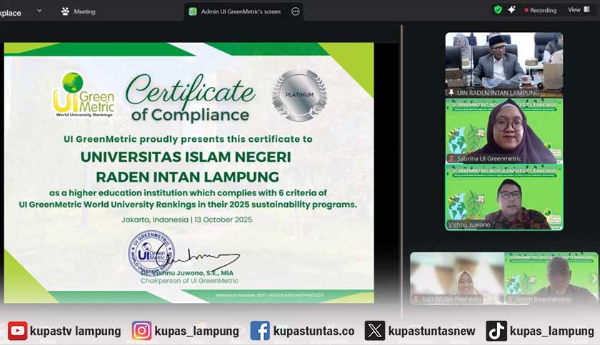 Kupastuntas.co, Bandar Lampung - Universitas Islam Negeri (UIN) Raden Intan Lampung (RIL) kembali mencatat prestasi dalam pengelolaan lingkungan kampus berkelanjutan.
