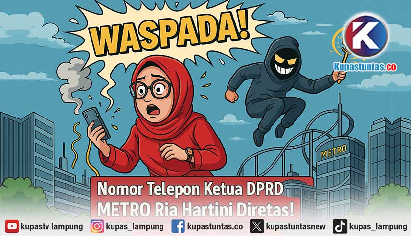 Kupastuntas.co, Metro - Masyarakat Kota Metro diimbau meningkatkan kewaspadaan terhadap potensi penipuan digital, menyusul informasi bahwa nomor telepon pribadi Ketua DPRD Kota Metro, Ria Hartini diduga telah diretas oleh pihak tidak bertanggung jawab.