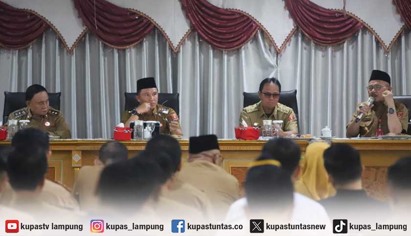 Bupat Lampung Barat Parosil Mabsus dan jajaran saat mengikuti kegiatan coffee morning dan rapat koordinasi (rakor) bulanan yang digelar di Aula Kagungan Sekretariat Daerah Kabupaten (Setdakab) Lampung Barat, Senin (20/10/2025). Foto: Echa/Kupastuntas.co