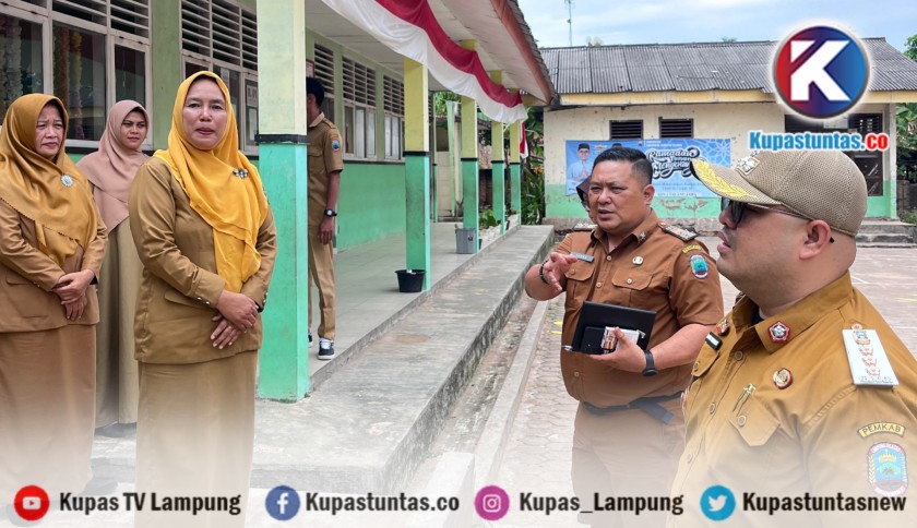 Dinas Pendidikan Lamsel dan Camat Merbau Mataram saat menemui Kepala SDN 2 talang Jawa, Dewi Yunianti beberapa waktu lalu. Foto: Ist.