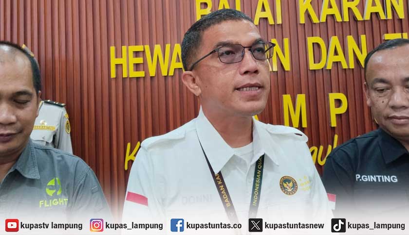 Kepala Balai Karantina Hewan, Ikan, dan Tumbuhan (Karantina) Lampung, Donni Muksydayan, saat dimintai keterangan, Rabu (22/10/2025). Foto: Ria/Kupastuntas.co
