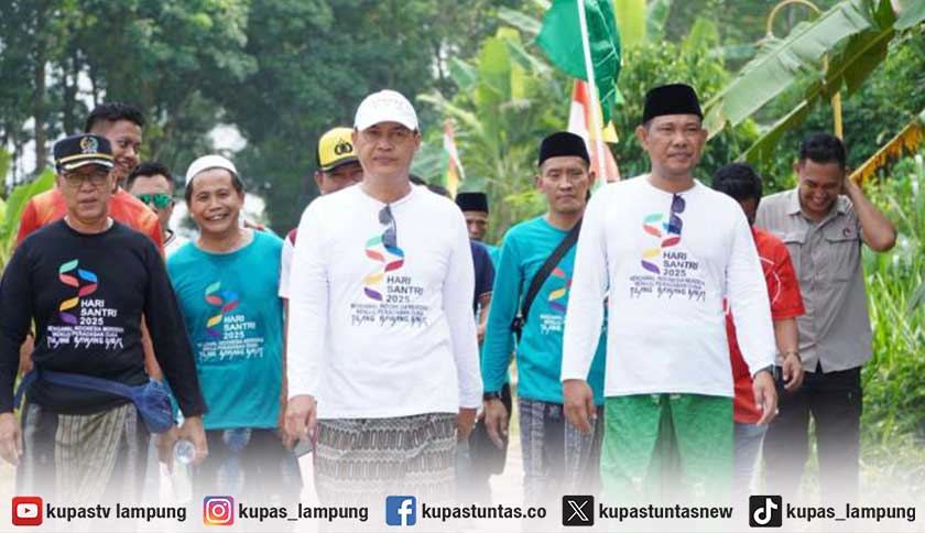 Bupati Tulangbawang Barat, Novriwan Jaya, bersama Wakil Bupati Nadirsyah, secara resmi melepas peserta jalan sehat. Acara berlangsung meriah dengan nuansa khas santri, di mana peserta mengenakan sarung dan atribut bernuansa religius yang mencerminkan semangat kebersamaan dan kebanggaan terhadap peran santri dalam pembangunan bangsa.