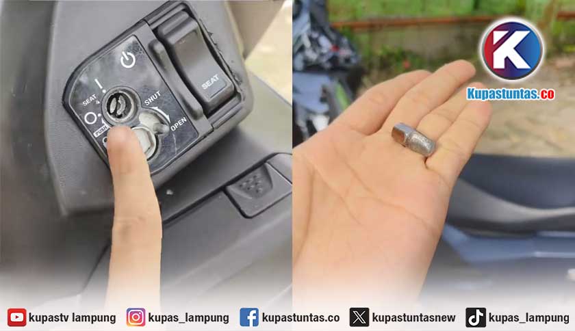 Tampak kunci letter T milik pencuri tertinggal di motor yang gagal dibawa kabur. Foto: Ist