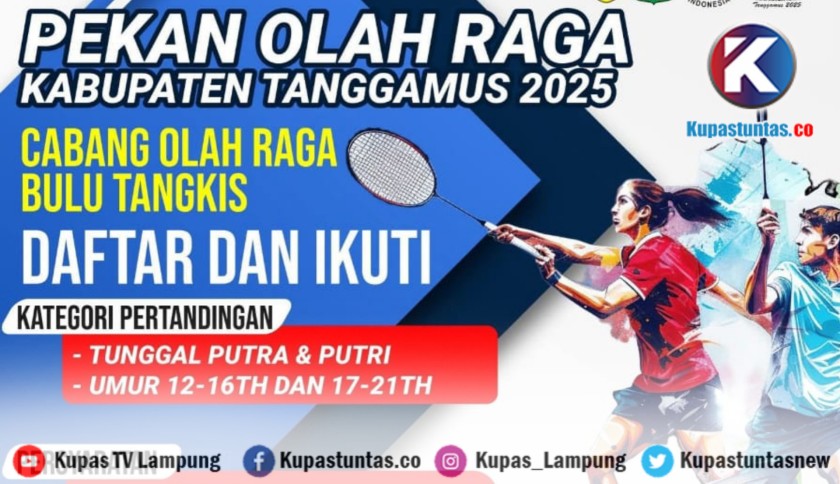 Kupastuntas.co, Tanggamus - Semangat bulu tangkis kembali menggema di Bumi Begawi Jejama. Menyambut Pekan Olahraga Kabupaten (Porkab) Tanggamus 2025, Persatuan Bulutangkis Seluruh Indonesia (PBSI) Kabupaten Tanggamus resmi membuka pendaftaran bagi atlet muda yang ingin membuktikan diri di lapangan.