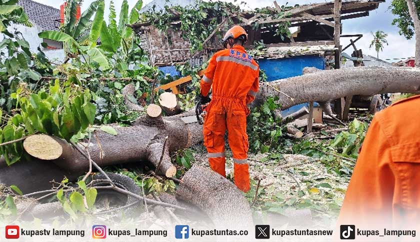 Kupastuntas.co, Bandar Lampung - Angin kencang yang melanda wilayah Kecamatan Kedamaian, Kota Bandar Lampung, mengakibatkan sebuah pohon tumbang di Jl. P. Antasari, Gang Mangga Besar, RT 04A, LK III, Kelurahan Tanjung Baru, pada Selasa, 4 November 2025.