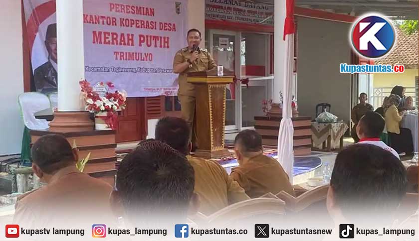 Kupastuntas.co, Pesawaran – Semangat kemandirian ekonomi masyarakat desa di Kabupaten Pesawaran kembali tumbuh dengan diresmikannya Kantor Koperasi Desa Merah Putih (KDMP) Trimulyo di Jalan Sutan Sakti, Dusun Wonorejo, Desa Trimulyo, Kecamatan Tegineneng, Selasa (4/11/2025).