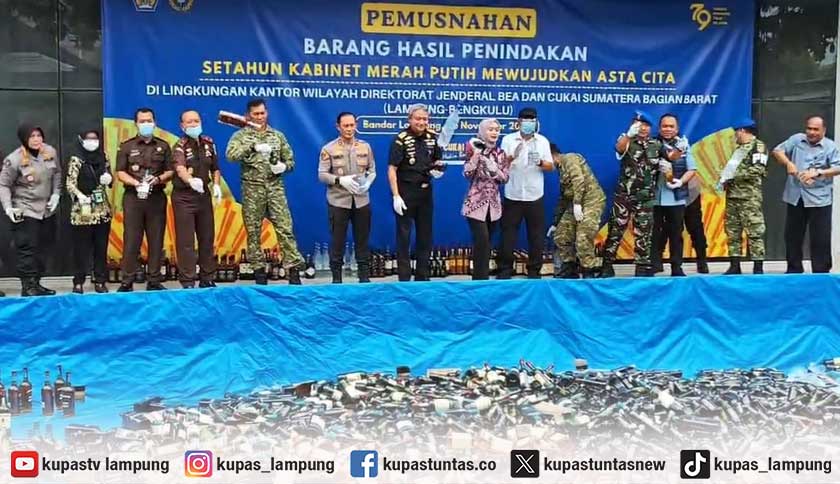 Proses pemusnahan sejumlah barang ilegal oleh Direktorat Jenderal Bea dan Cukai Sumatera Bagian Barat (Sumbagbar) di Bandar Lampung. Foto: Yudi/Kupastuntas.co