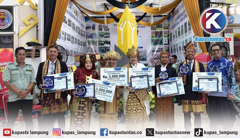 Kupastuntas.co, Metro - Kota Metro menegaskan posisinya sebagai lumbung pendidik berprestasi di Provinsi Lampung. Enam orang guru, kepala sekolah (Kepsek), dan tenaga kependidikan asal Kota Metro menyabet berbagai penghargaan bergengsi dalam Festival Kreasi Guru dan Tenaga Kependidikan (GTK) 2025 yang digelar di Graha Mandala, Bandar Lampung, pada Sabtu (8/11/2025).