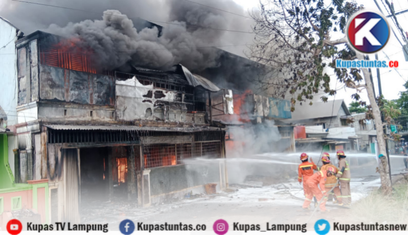 Kupastuntas.co, Bandar Lampung -Kebakaran hebat melanda sebuah rumah yang juga berfungsi sebagai bengkel spare part motor “Krisna Bengkel Spare Part” di Jalan Garuda Nomor 11, Kelurahan Beringin Raya, Kecamatan Kemiling, Kota Bandar Lampung, Kamis (13/11/2025) sore.