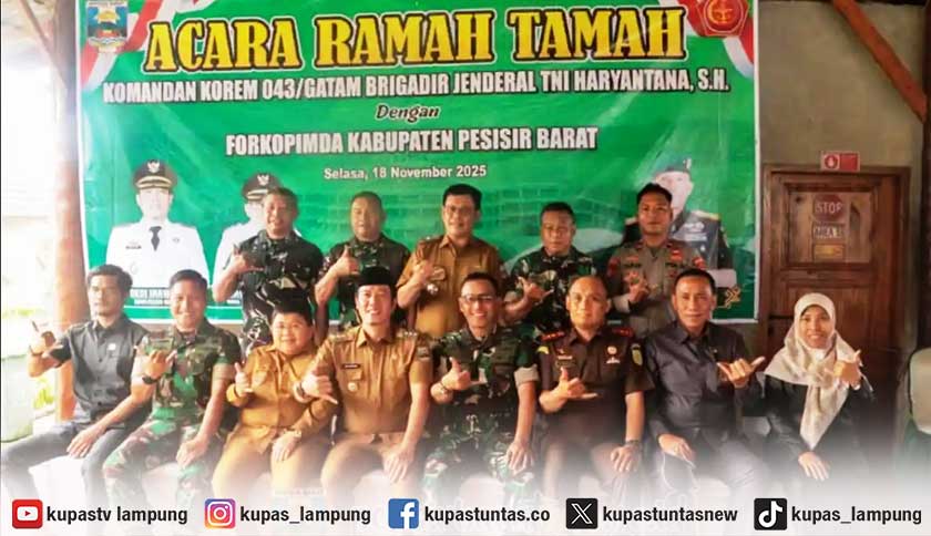 Kupastuntas.co, Pesisir Barat – Kunjungan kerja Komandan Korem 043/Garuda Hitam, Brigjen TNI Haryantana, ke Kabupaten Pesisir Barat menjadi dorongan baru bagi peningkatan kerja sama antara TNI dan pemerintah daerah dalam menjaga keamanan sekaligus mempercepat pembangunan wilayah.