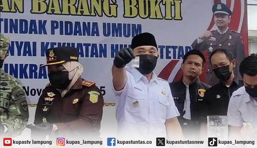 Kupastuntas.co, Lampung Selatan – Wakil Bupati Lampung Selatan, M. Syaiful Anwar, menegaskan bahwa keberhasilan pembangunan daerah tidak akan tercapai tanpa keamanan yang kuat. Hal itu ia sampaikan saat menghadiri pemusnahan barang bukti narkotika di Kantor Kejaksaan Negeri (Kejari) Lampung Selatan, Rabu (19/11/2025).