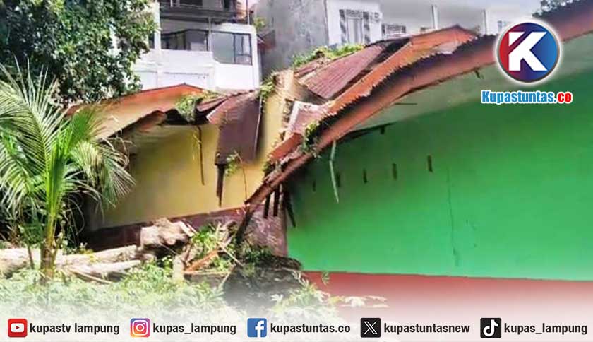Kupastuntas.co, Bandar Lampung - Cuaca buruk yang melanda wilayah Kota Bandar Lampung pada Rabu (19/11/2025) sore hingga malam, menyebabkan sebuah pohon kedondong hutan berdiameter 120 Centimeter tumbang dan menimpa dua ruangan sekolah di Kecamatan Bumi Waras.