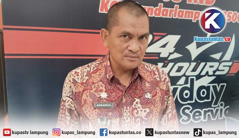 Kepala Dinas Sosial Provinsi Lampung Aswarodi saat dimintai keterangan, Jum'at (21/11/2025). Foto: Ria/Kupastuntas.co