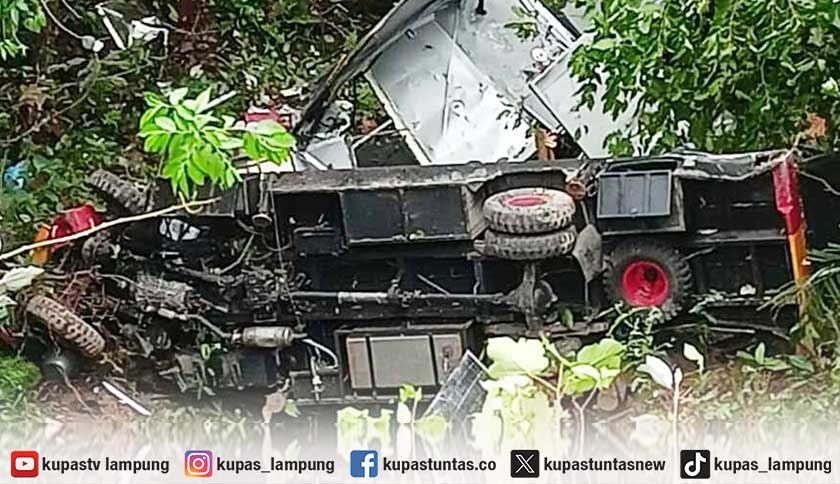 Kupastuntas.co, Pesisir Barat - Sebuah truk taktis pengangkut perlengkapan dapur milik Brimob Polda Bengkulu mengalami kecelakaan dan masuk ke jurang sedalam sekitar 30 meter di Pekon Rata Agung, Kecamatan Lemong, Kabupaten Pesisir Barat, Lampung, pada Minggu (23/11/2025).