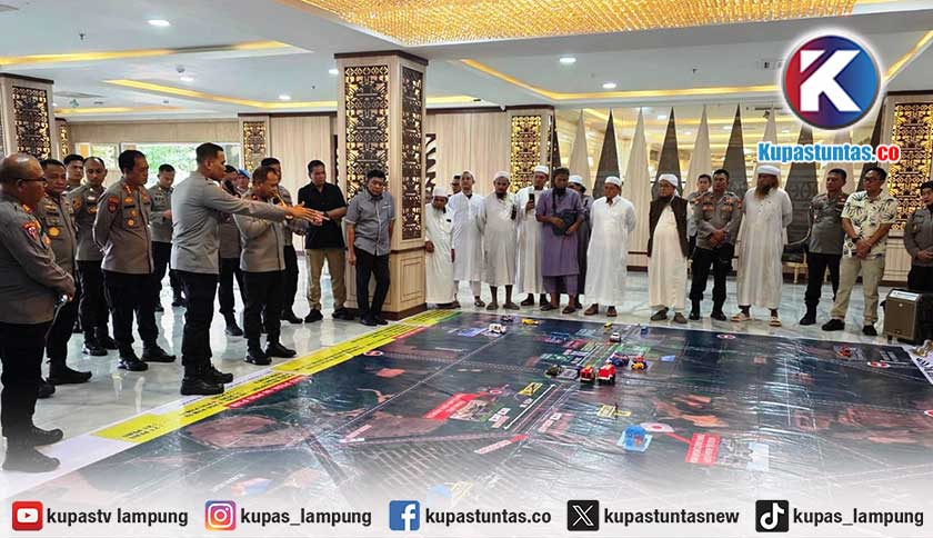 Kupastuntas.co, Lampung Selatan - Polda Lampung menggelar Tactical Floor Game (TFG) untuk mematangkan rencana pengamanan Ijtima Ulama Dunia 2025 yang akan berlangsung di Kota Baru, Lampung Selatan. Kegiatan dilaksanakan di Siger Lounge Mapolda Lampung, Selasa (25/11/25).