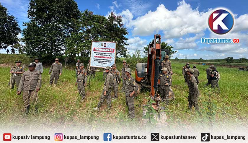 Pemprov Lampung menertibkan aset tanah di Desa Purwotani Kecamatan Jati Agung, Lampung Selatan. Foto: Ist