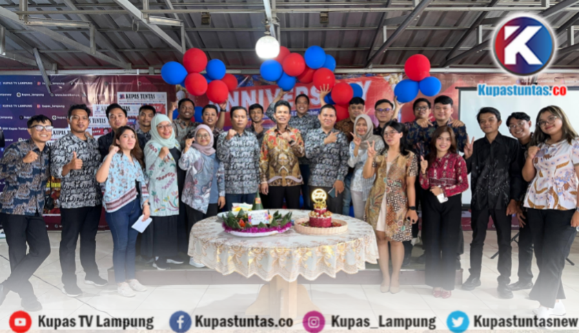 Kupastuntas.co, Bandar Lampung - Kupas Tuntas Group merayakan Hari Ulang Tahun (HUT) Surat Kabar Harian (SKH) Kupas Tuntas ke-19 secara sederhana namun penuh kebersamaan melalui pemotongan kue dan tumpeng di kantor redaksi, Rabu (3/12/2025).