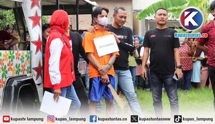 Rekonstruksi digelar di lokasi kejadian, tepatnya di Dusun Bulusari, Pekon Bulurejo, Kecamatan Gadingrejo, Kabupaten Pringsewu, Senin (8/12/2025) siang.