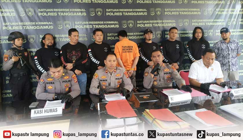 Kapolres Tanggamus AKBP Rahmad Sujatmiko saat memimpin konferensi pers di Mapolres Tanggamus, Kamis (18/12/2025). Foto: Sayuti/Kupastuntas.co
